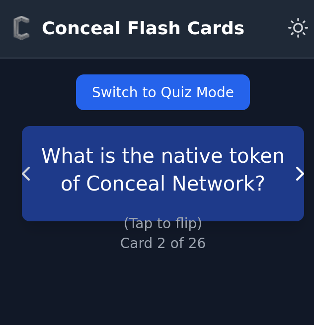 Conceal Flash card and Quizz